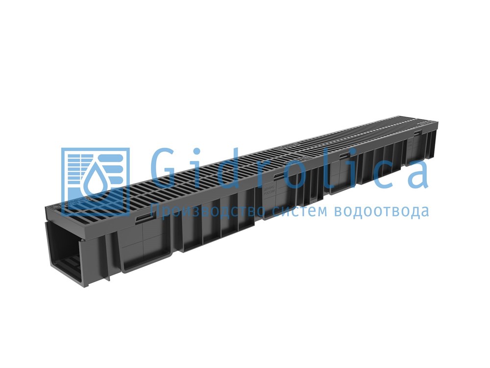 )Водоотводный комплект (решетка + лоток) условного прохода 100 мм предназначен для самостоятельного использования и применения в централизованных коммуникационных системах отведения и утилизации дождевых вод. Является составной частью системы Gidrolica® Light.