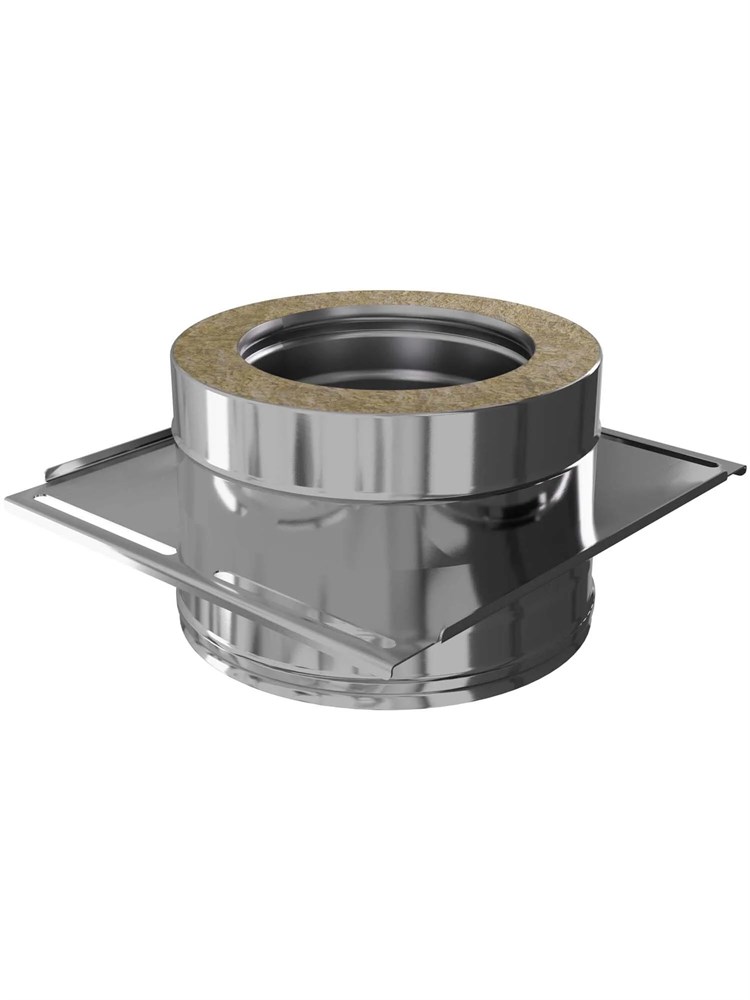 Утепленный элемент для перераспределения веса дымохода на опорные конструкции. Применяется совместно с консолями (приобретаются отдельно). Внутренний контур изготовлен из коррозионностойкой нержавеющей стали AISI 316L толщиной 0,8 мм. Внешний контур выполнен из аустенитной стали AISI 304 толщиной 0,5 мм. Теплоизоляция - из базальтовой ваты, это позволяет свести к минимуму образование конденсата и будет способствовать быстрому прогреву дымоходного канала и выходу системы в рабочий режим. Холодная формовка раструбного соединения с идеальной геометрией и газоплотностью. Лазерная сварка встык обеспечивает тонкий и прочный шов, увеличивая в разы срок эксплуатации. Рабочая температура до 600°С.