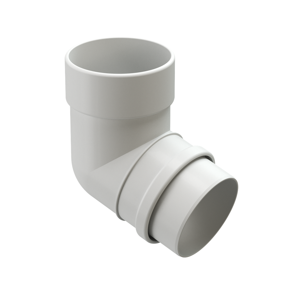 Фигурная часть водослива собирается из двух колен и отрезка трубы необходимой длины. Верхнее колено просто вставляется в воронку, а нижнее фиксируется хомутом к фасаду дома.