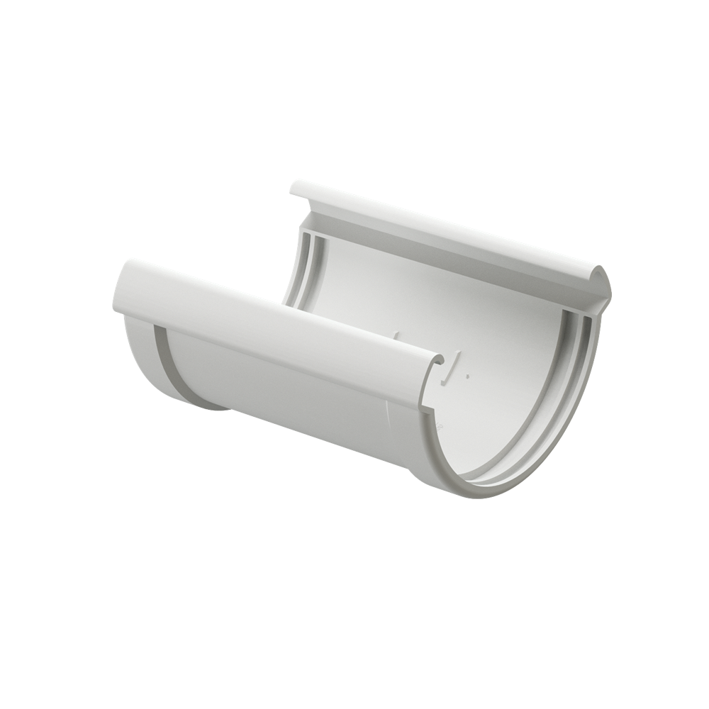 Соединитель желобов- элемент водосточной системы, который используется для прямого соединения желобов, когда желоба длиной в 3 метра не хватает, или остались обрезки, которых хватит на ровный участок стороны крыши дома.