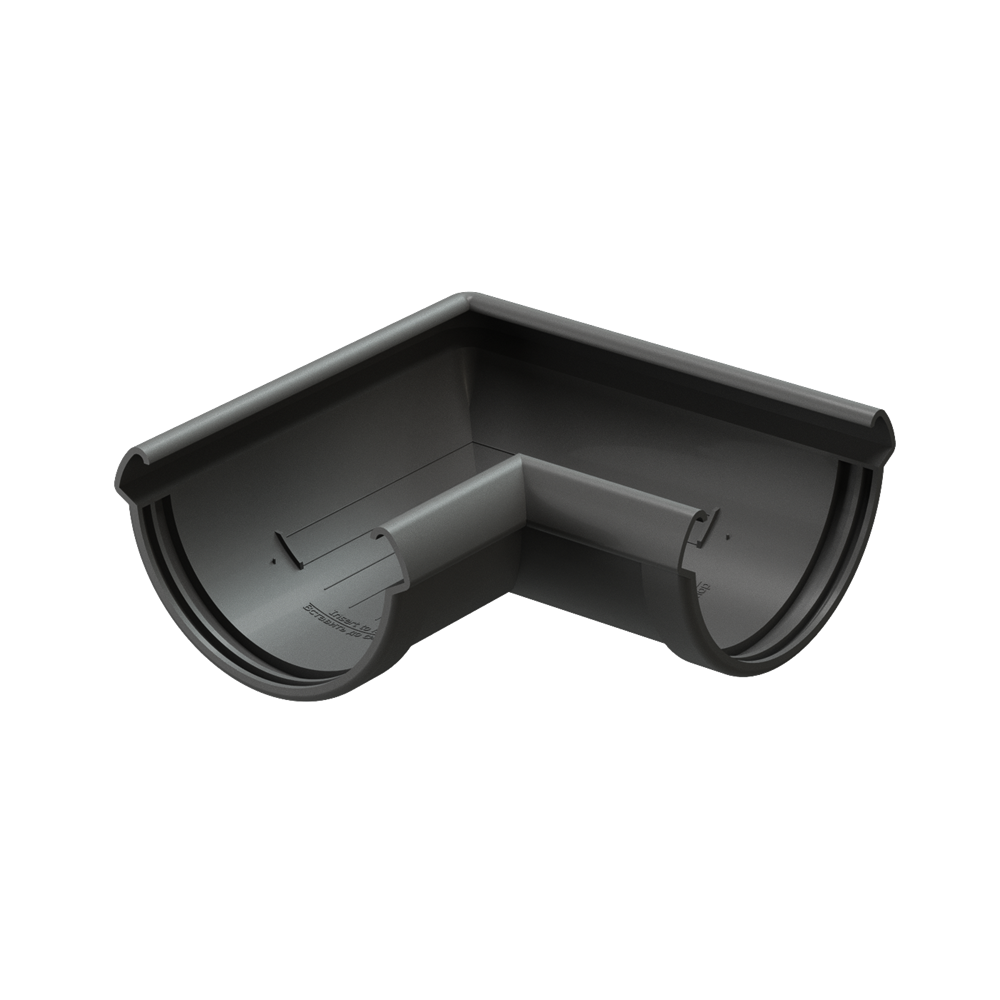 Угловой элемент для соединения желобов под углом 90 градусов серии «LUX» имеет утолщенные стенки, что увеличивает износостойкость. Цвет «Графит» водосточной системы сочетается с разными цветовыми решениями для крыши и фасада. Водостоки с гарантией производителя Docke только у официальных дилеров.