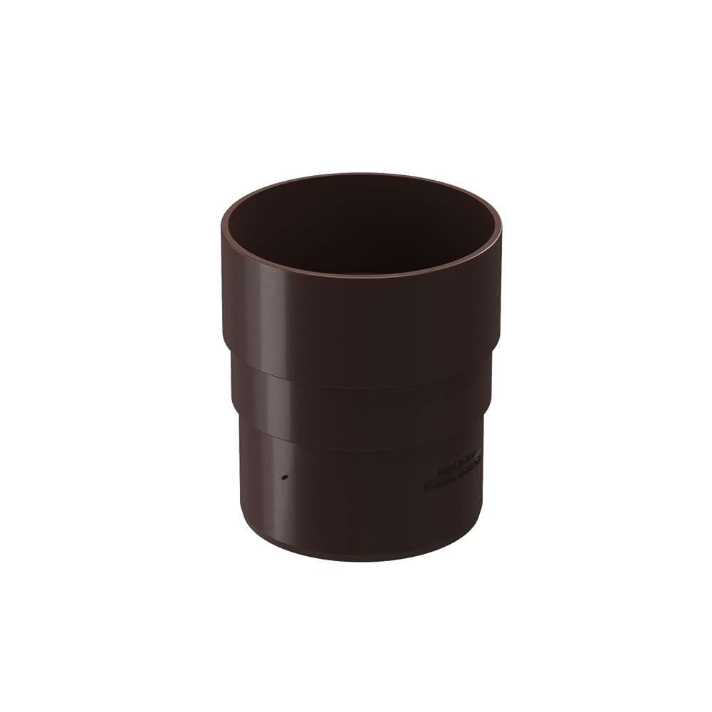 Соединительная муфта для водостока цвета «Шоколад» используется, когда необходимо объединить водосточные трубы такого же цвета вдоль одной оси. Или для соединения трубы с воронкой, когда отсутствует необходимость в системе колен для перехода.