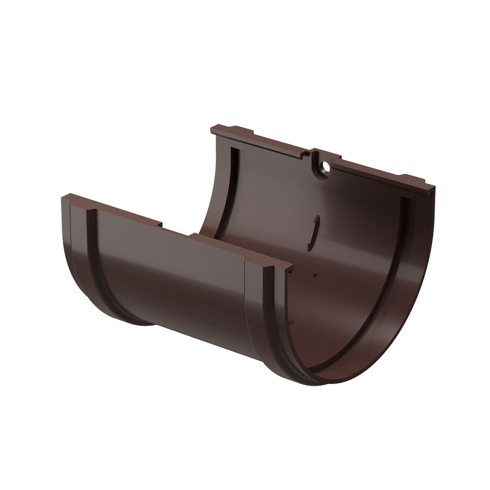 Соединитель желобов серии «Premium», окрашенный в цвет «Шоколад» используется для соединения желобов водосточной системы одноименной однотонной серии по одной оси.
