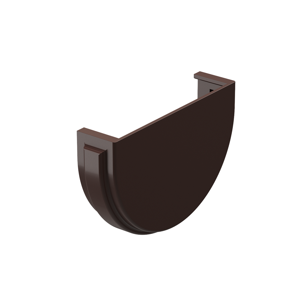 Заглушка желоба цвета «Шоколад» плотно вставляется на торцы желобов идентичного цвета и служит надежной защитой от протечки воды.