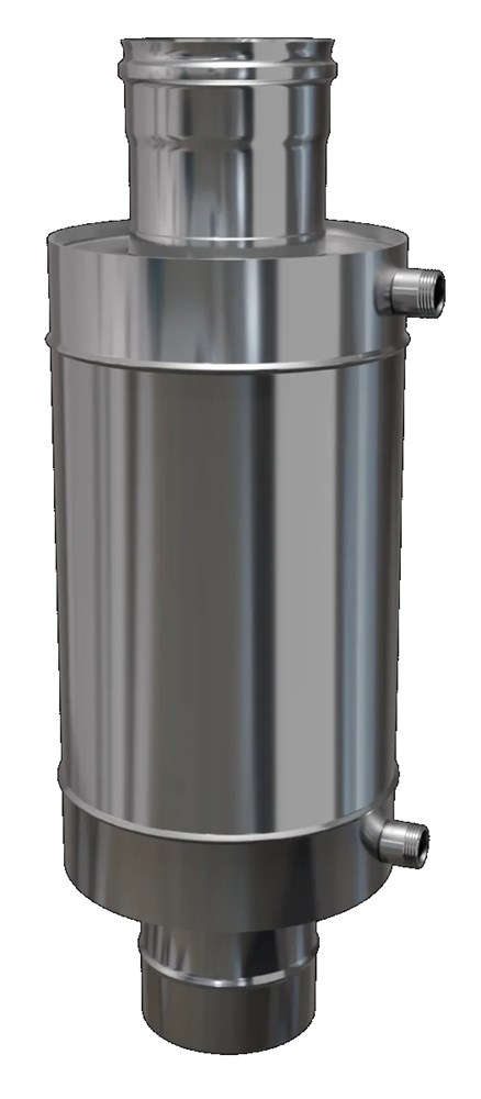 Бак-теплообменник (дымоход с водяным контуром) предназначен для использования совместно с банными печами и отопительными котлами для подогрева воды и последующего ее использования в помывочных и душевых помещениях. Конструкция состоит из герметичного корпуса, выполненного из нержавеющей стали AISI 201. Важно! Использование бака-теплообменника возможно только в сочетании с накопительным баком и теплогенерирующим аппаратом, имеющим дымоотводящий канал.
