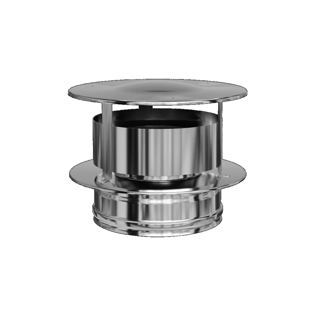 Завершающий элемент дымового канала, закрывает торцы сэндвича и предохраняет от атмосферных осадков. Внутренний контур изготовлен из нержавеющей стали AISI430 толщиной 0,5 мм. Холодная формовка раструбного соединения с идеальной геометрией и газоплотностью. Лазерная сварка встык обеспечивает тонкий и прочный шов, увеличивая в разы срок эксплуатации. Рабочая температура до 450°С.