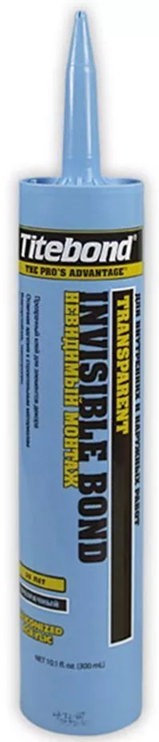 )Невидимый монтажный клей Titebond Invisible Bond голубой картридж 57451 широко применяется для приклеивания нетяжелых элементов декора, например: наличники, плинтусы, галтели и уголки из вспененного ПВХ и полистирола. Также подходит для работы и с любыми другими строительными материалами (металлом, стеклом, древесиной, ДВП, бетоном, кирпичом, штукатуркой, обоями и т. д.). Обеспечивает невидимый шов.