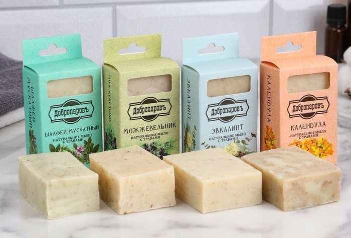 Мыло натуральное "Эвкалипт, Календула, Можжевельник, Шалфей" набор 4шт по 100г
