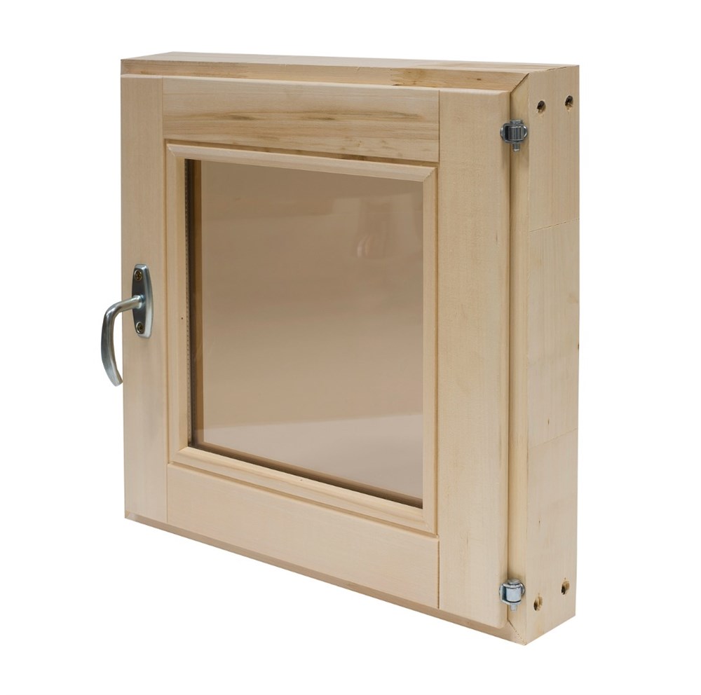 Окно для бани 400*400 с ручкой (стеклопакет, липа)