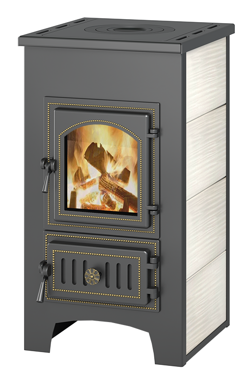 Печь-Камин ВЕЗУВИЙ ПК-01 (270) с плитой беж. 9кВт (150м3) Ø115мм