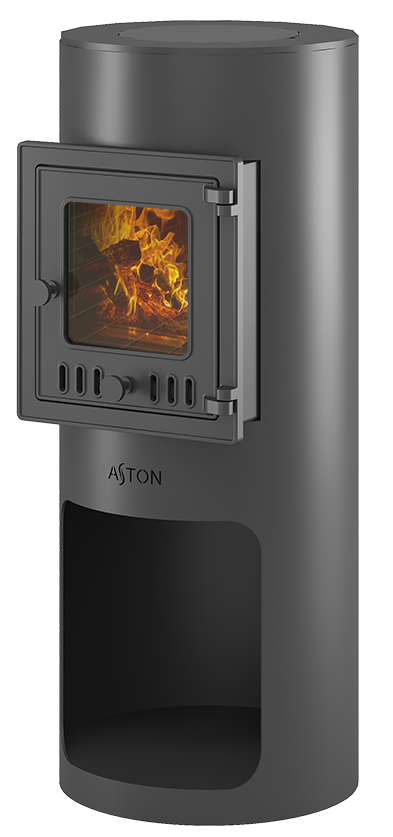 Отопительная печь ASTON " Dachnaya 100" ДТ-4С имеет цилиндрическую форму, с удобной остеклённой чугунной дверью и съёмной верхней конфоркой из чугуна. Аккуратная, компактная и эстетичная печь рассчитана на прогрев помещений объёмом до 100 кубических метров. На печи можно готовить или разогревать еду.