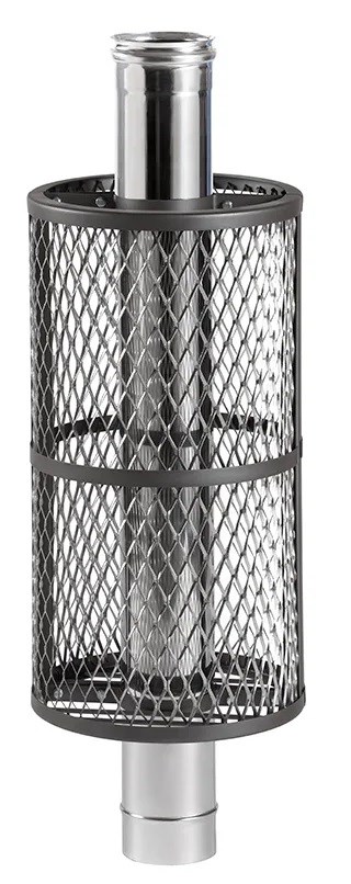 Сетка-каменка защищает от излучения, уменьшая поверхность открытой трубы, снимает тепло с ее стенок и направляет его на прогрев камней.