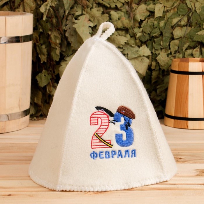 Шапка для бани и сауны «23 Февраля», полиэфир 70%, шерсть 30%, белая