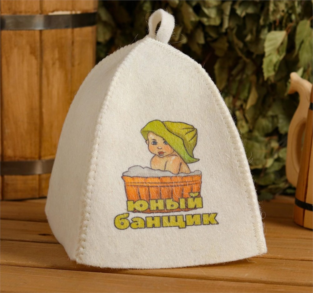 Шапка для бани и сауны, детская, с принтомом «Юный банщик», полиэфир 20%, шерсть 80%, белая