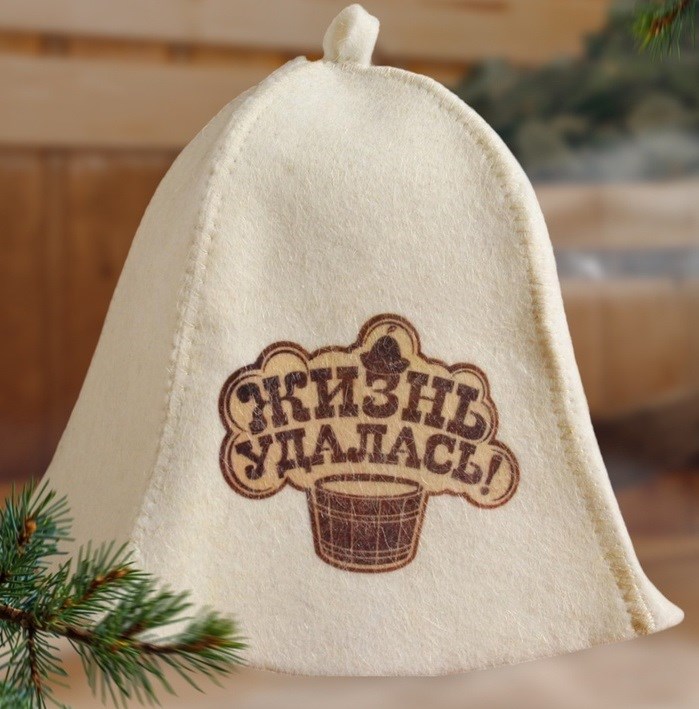 Шапка для бани "Жизнь удалась" с принтом