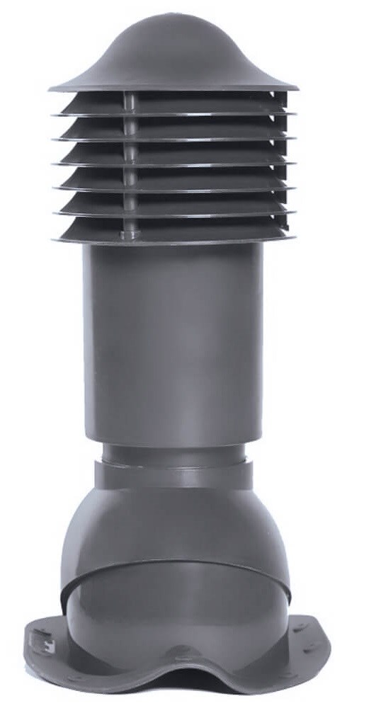 2. Состоит из основания (проходного элемента), трубы (с кольцами и колпаком) и гофры (для соединения с трубами вентиляции).